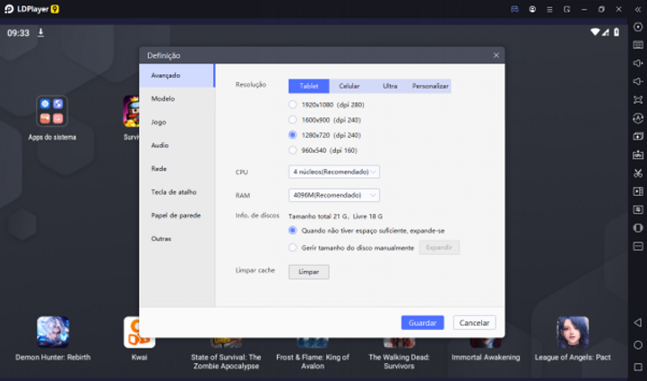É importante configurar esta opção porque para usar a mais alta resolução e ver filmes e séries na sua melhor definição, o emulador precisa ser configurado para rodar a 720p e acima.